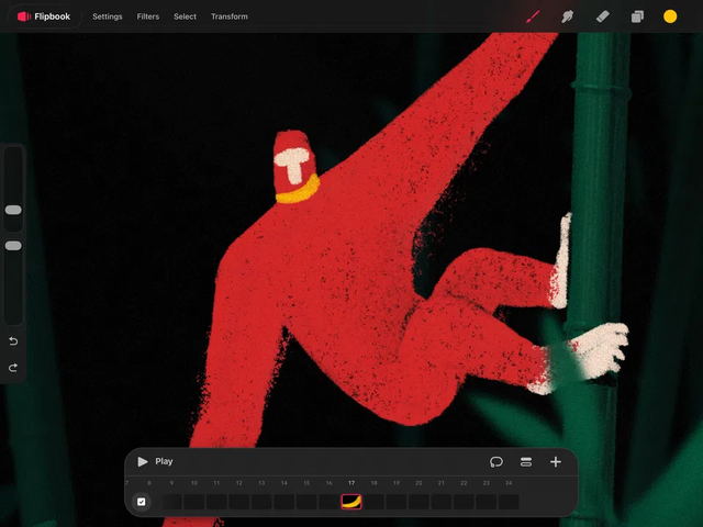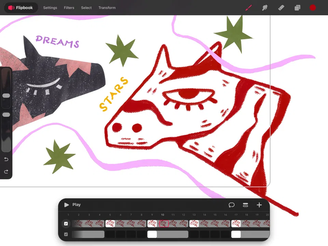 We completely rebuilt painting in Procreate Dreams 2. This means that you can now use Selection and Transform tools to isolate and modify parts of your content while in a Drawing or Flipbook: