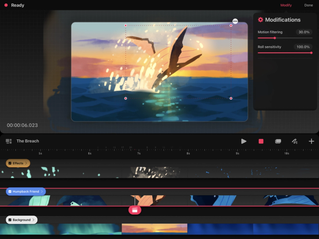 Performing motion in Procreate Dreams can be affected by the Modifications settings. Access these settings by tapping Modify while Performing.