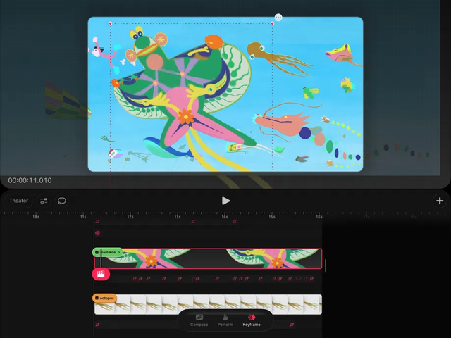 Remember that modifying content in Compose mode does not affect keyframes, which can be really useful for adjusting composition of your movie elements without affecting their animated properties.