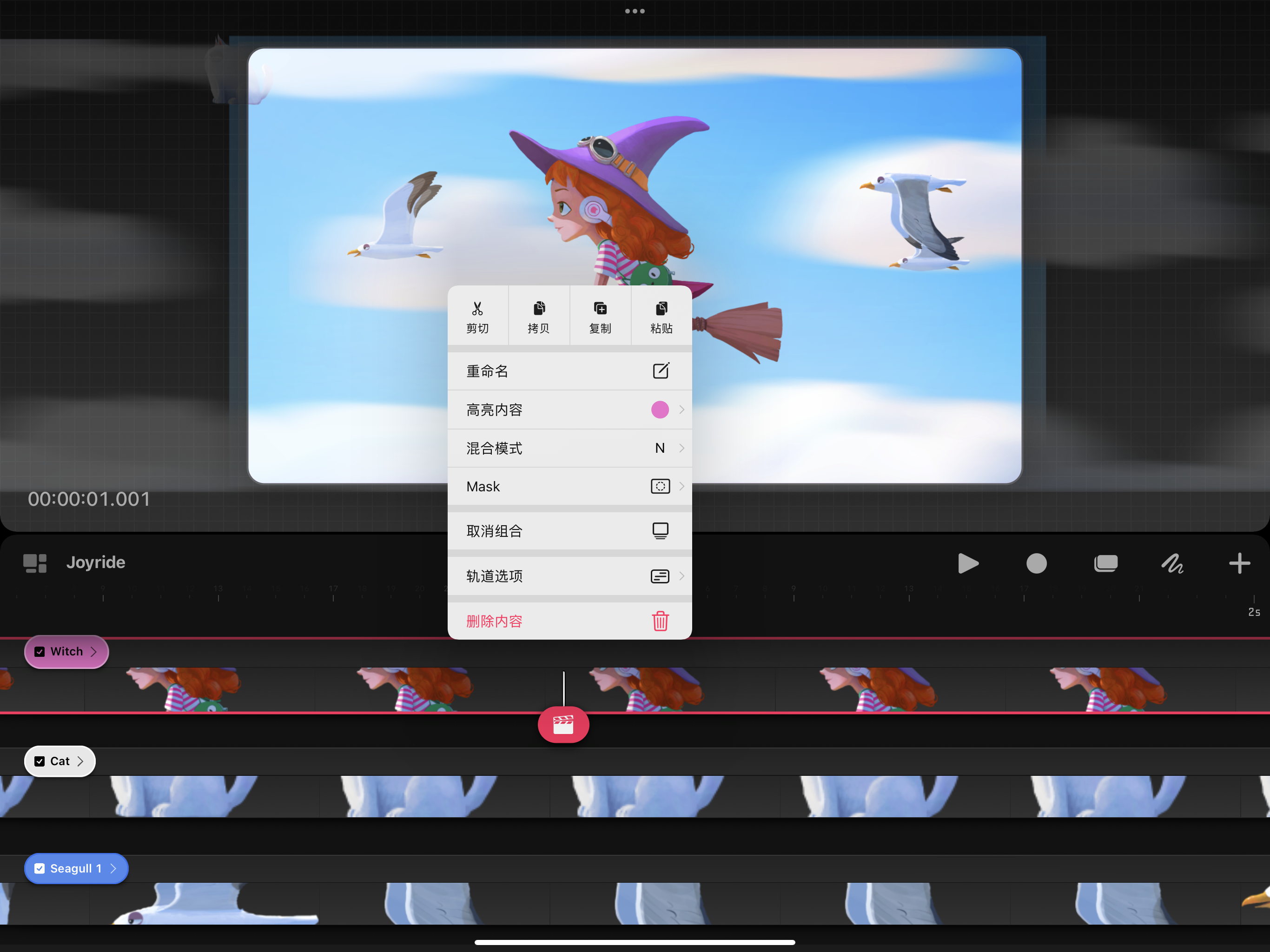 你还可以对组进行移动和制作动画或应用效果和滤镜,从而加快你的工作流程。这也是处理一组相似或相关内容(如角色的身体和服装)的好用方法。