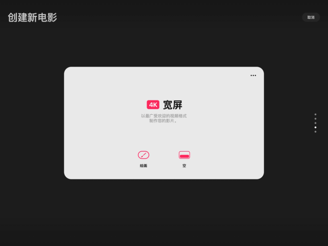 轻点剧场右上角的创建按钮 ,这将打开创建新电影界面。