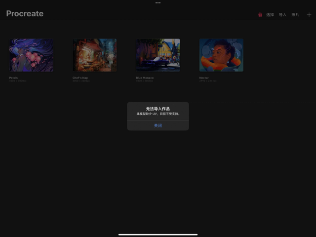 如果你导入了带有重叠 UV 贴图的 3D 模型,Procreate 会提示信息”不支持的模型功能—您在绘图此模型时可能会由于以下特性而遇到问题:重叠UV坐标“。