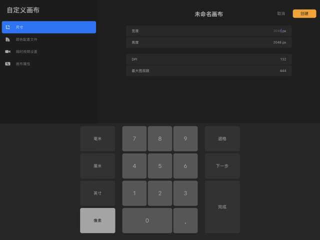 通过调整色彩配置文件、缩时视频设置和画布属性,进一步自定义新画布。