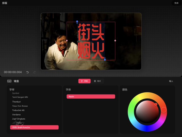 轻点列表中的任何字体,即可看到该字体套用到文本中的样子。