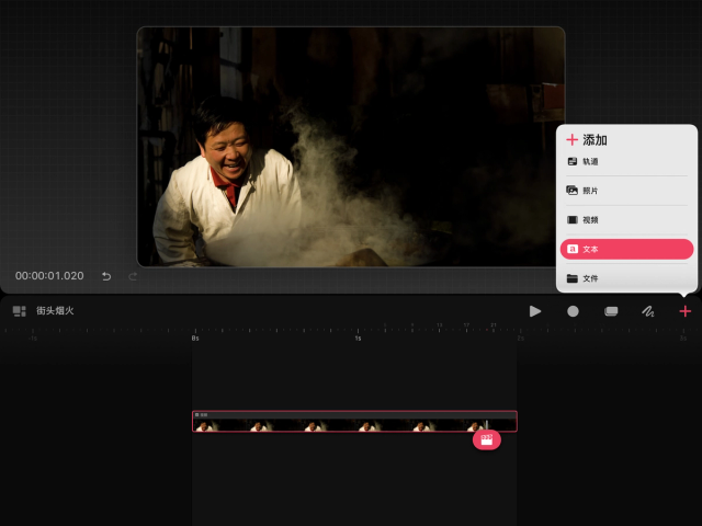 在时间轴上轻点你要删除的文本内容,直到出现内文菜单。