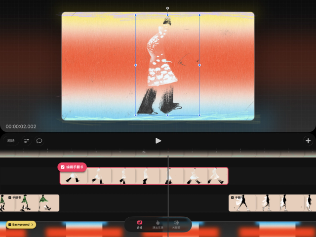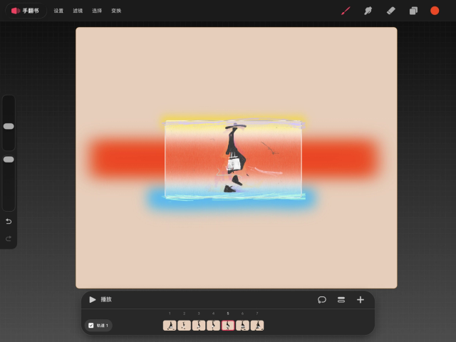 画布区域是你进行绘画、创作“绘图”和“手翻书”的地方。每个画布区域都与你当前编辑的特定绘图或手翻书相关联。当你进入画布时,即处于“绘画与绘图”模式,这让你能够使用各种画笔和工具来创作影片中的元素。