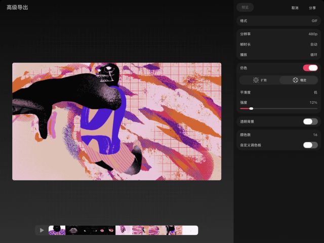 调整仿色数值后,请务必轻点“预览”,因为这些设置可能会显著改变 GIF 的最终输出效果。