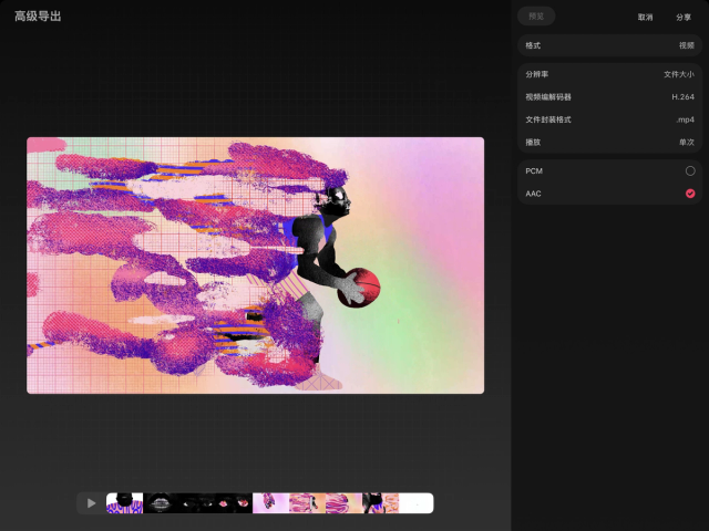 高级导出为导出过程提供了许多可自定义的选项,例如格式、分辨率、播放样式等。