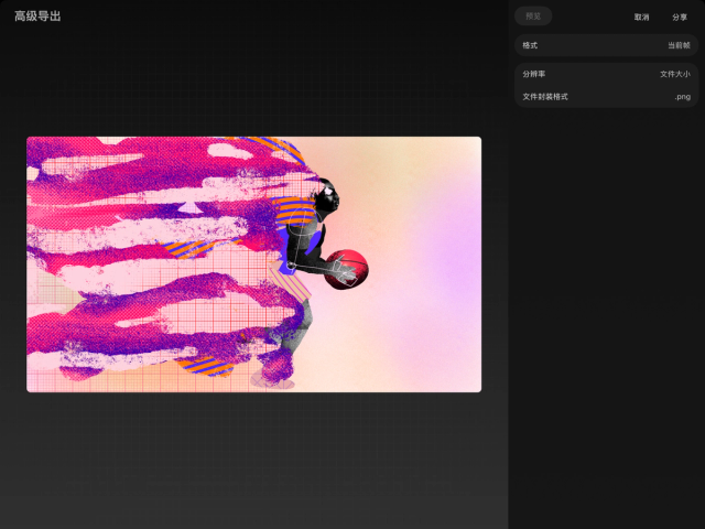 即使是在性能强大的设备上,复杂或较长的项目也可能需要一些时间来完成预览和渲染。在预览渲染以及使用“分享”导出影片时,请耐心等待,不要关闭 Procreate Dreams。