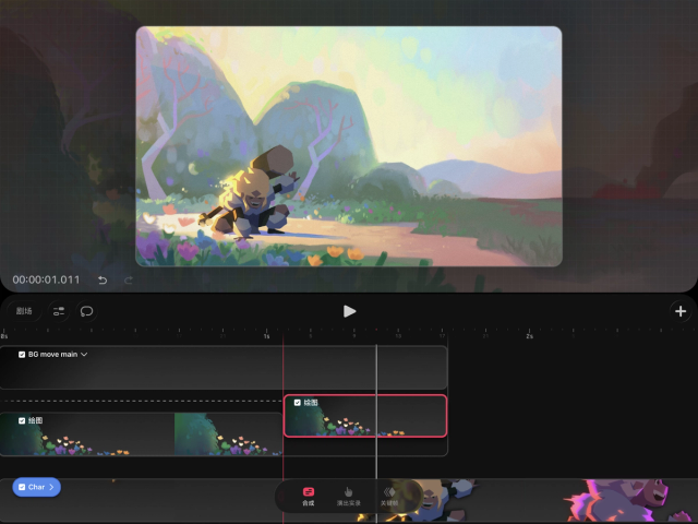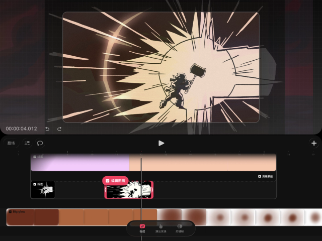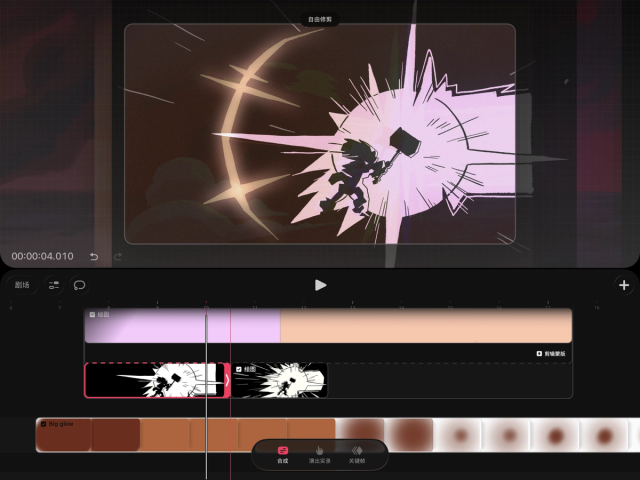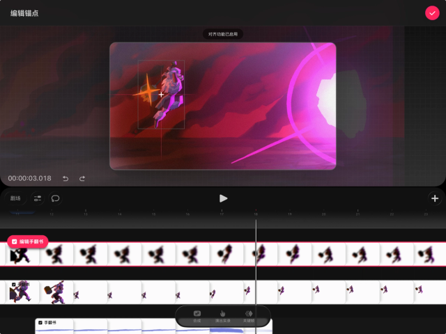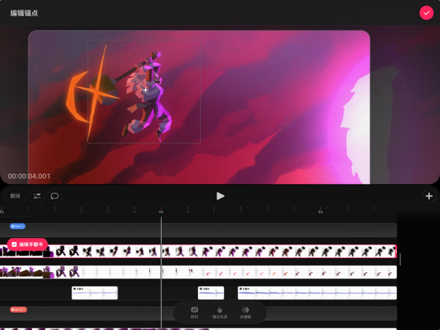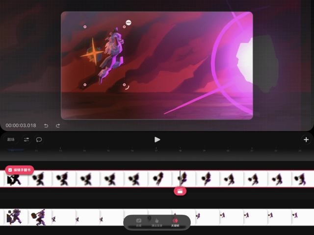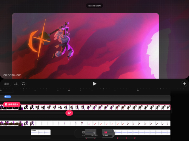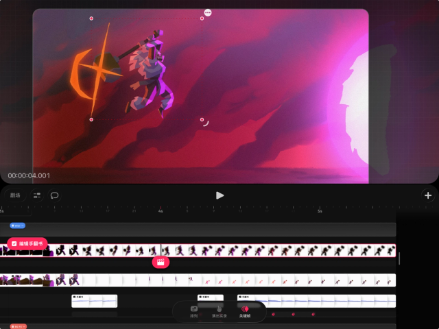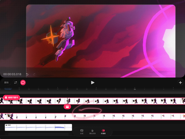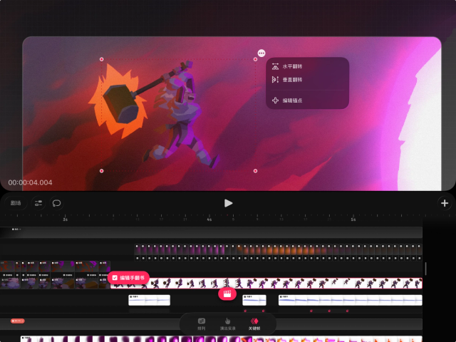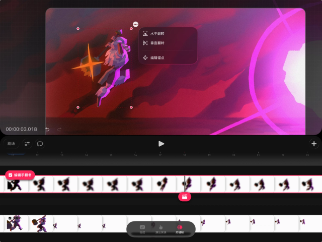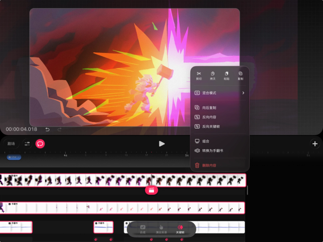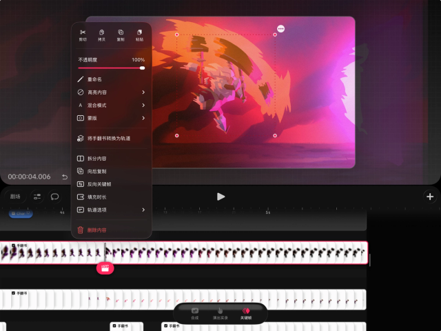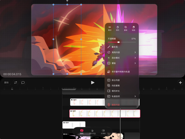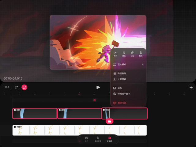 如果你想在时间轴的轨道上单独编辑内容,也可以将手翻书还原为轨道。操作方法是,在时间轴上轻点并按住手翻书,然后选择“将手翻书转换为轨道”。