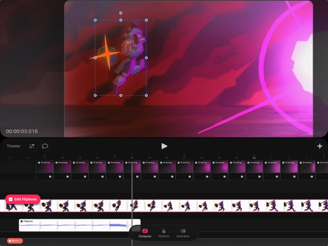 在合成模式下更改内容不会影响你的关键帧。它独立于关键帧数据运作,这让你可以在移动元素的同时保留其原有的属性。