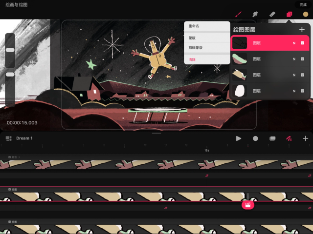 使用图层选项内容菜单即可访问重命名和清除等选项。轻点选定的图层以打开图层选项。