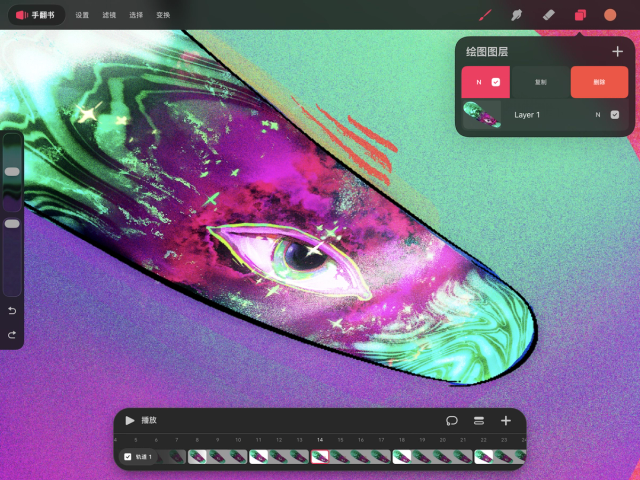 在任一图层上从右向左轻扫,即可显示“复制”和“删除”按钮。