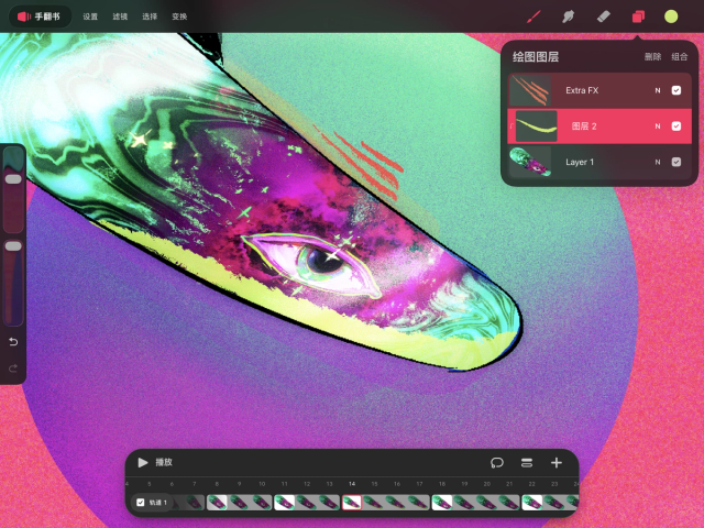 你也可以在图层界面通过双指捏合的方式来快速合并图层。