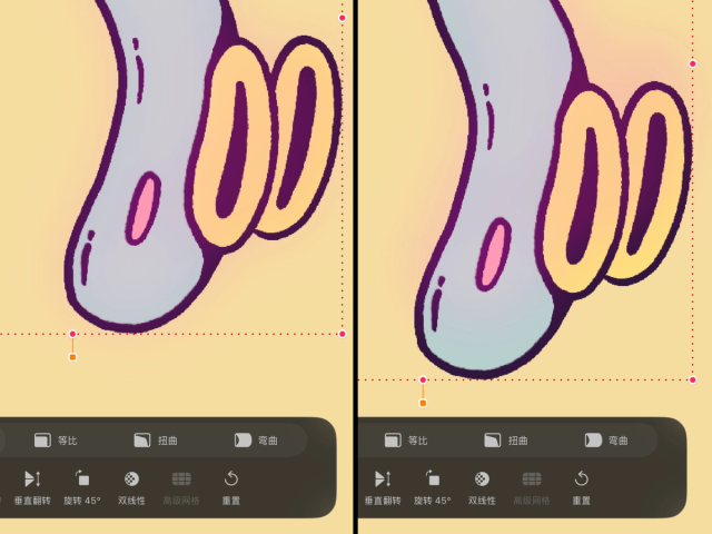 轻点此栏上的选项,即可切换当前的变换模式。Procreate Dreams 提供以下几种模式,下文将逐一进行说明: