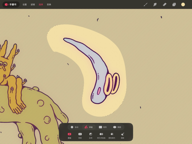 同时变换多个图层!打开图层列表,在多个图层上向右轻扫,然后轻点“变换”。现在,你可以对所有选中的内容进行批量调整。当你退出并确认变换操作后,请给 Procreate Dreams 一点时间来完成画面渲染。
