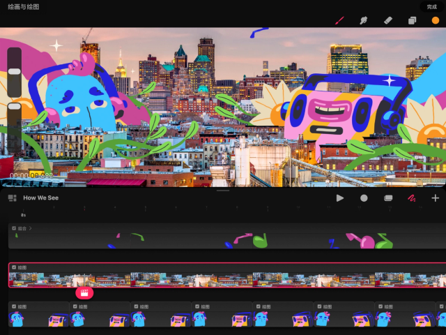 Procreate Dreams 中的舞台专为触控操作设计。在本手册的 手势 页面,你可以了解到能加快工作流程的舞台手势。
