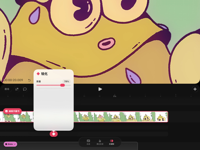 设置一个“锐化”关键帧,并移动滑块,直到达到所需的清晰度。