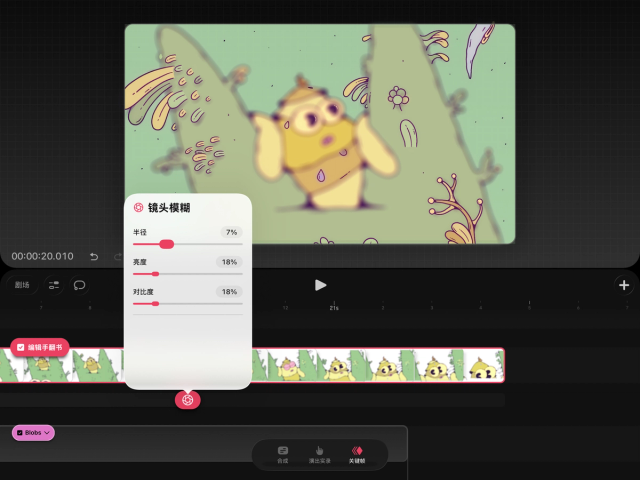 设置一个“高斯模糊”关键帧,并移动滑块,直到达到所需的模糊程度。
