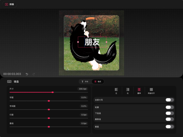 你可以像处理 Procreate Dreams 中的其他类型的内容一样,通过关键帧来改变文本并制作动画。在添加关键帧之后,你依然可以返回修改文本内容。