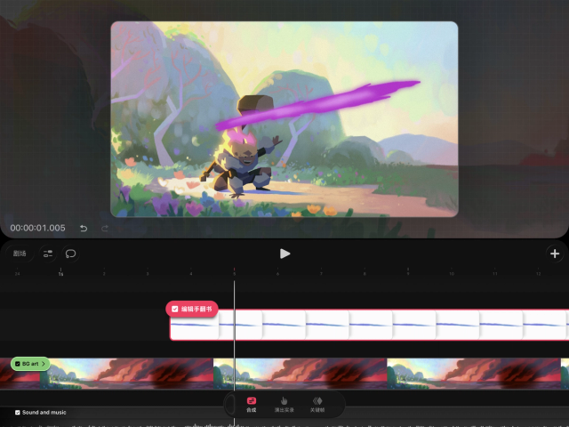 如果你想创建“绘图”或“手翻书”,请使用“创建”菜单中的相应选项,它们会自动将你的内容放置在当前轨道的可用空间上,或者放在新轨道中,并让你直接进入“绘画与绘图”模式。