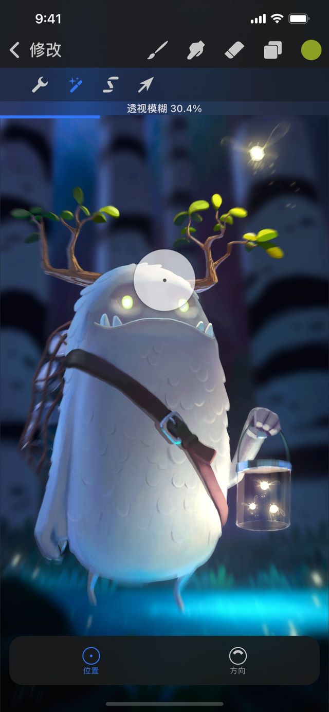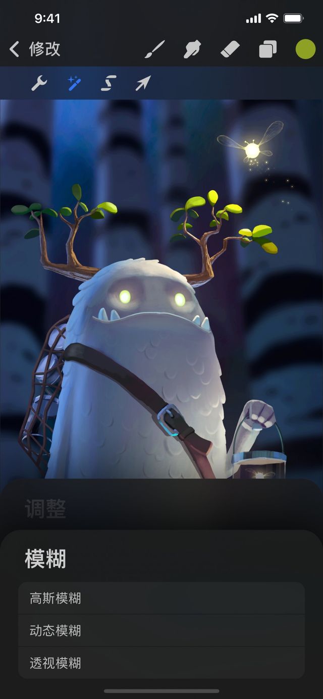 若想执行编辑并留在透视模糊界面中,轻点画布呼唤 调整操作 后轻点 应用 即可。