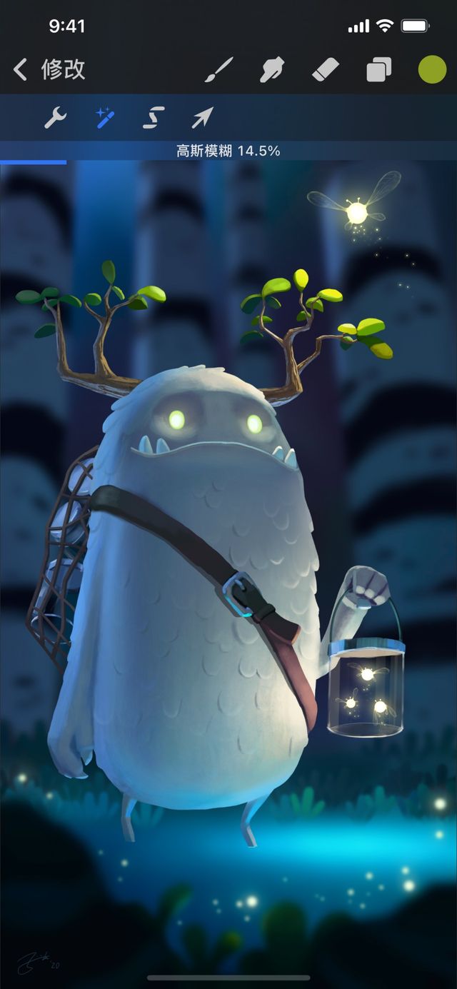 若想执行编辑并留在高斯模糊界面中,轻点画布呼唤 调整操作 后轻点 应用 即可。