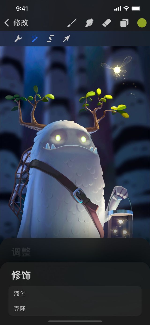 若想执行编辑并留在克隆界面中,轻点画布呼唤 调整操作 后轻点 应用 即可。