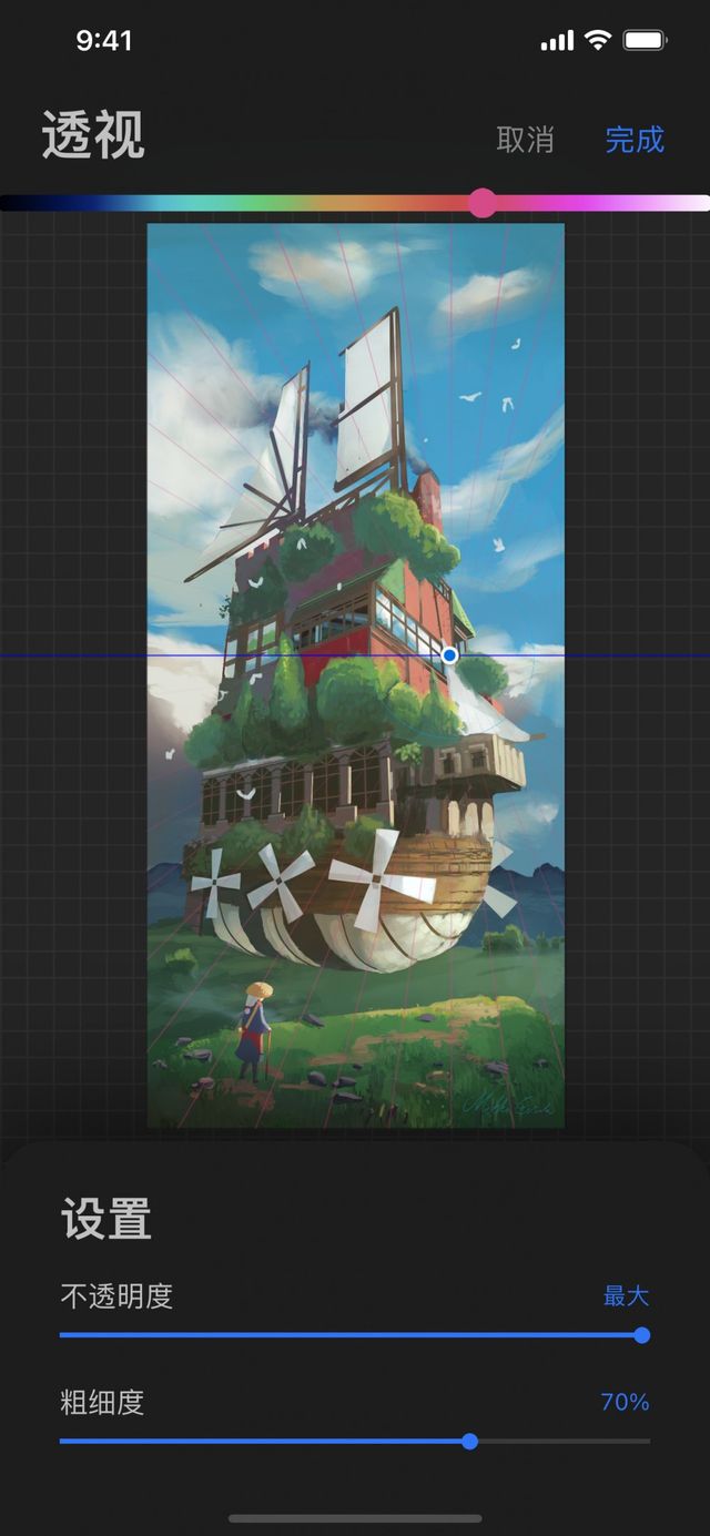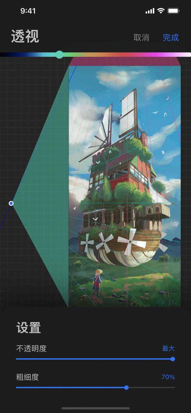 透视指引提供你可调整的透视点,用它来为你的作品创构写实的物件和背景。