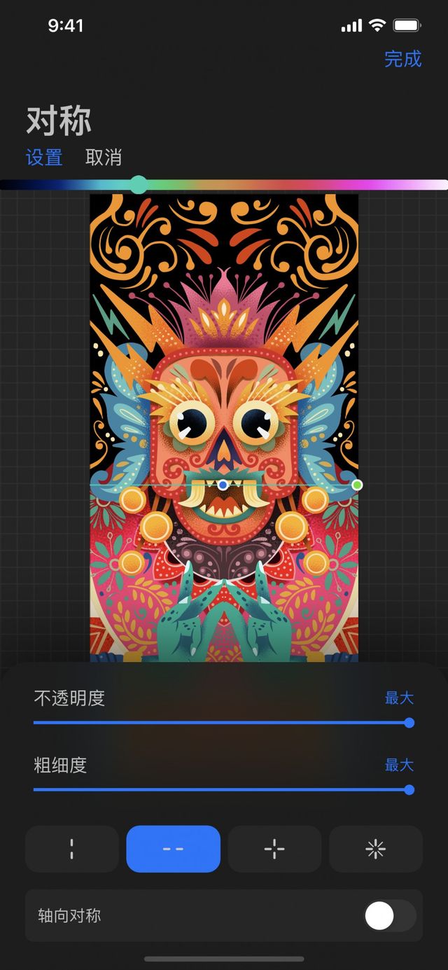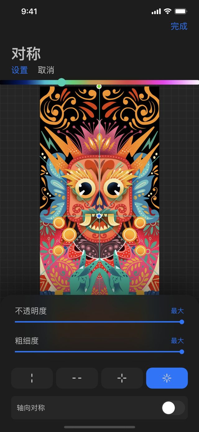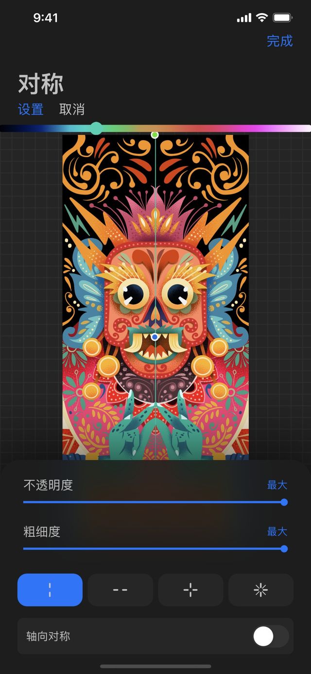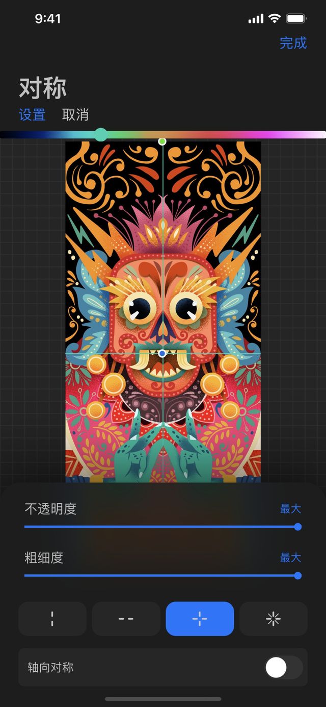 可以试验看看不同设置展现出的效果,轻点 轴向对称 可以在两种模式间往返。