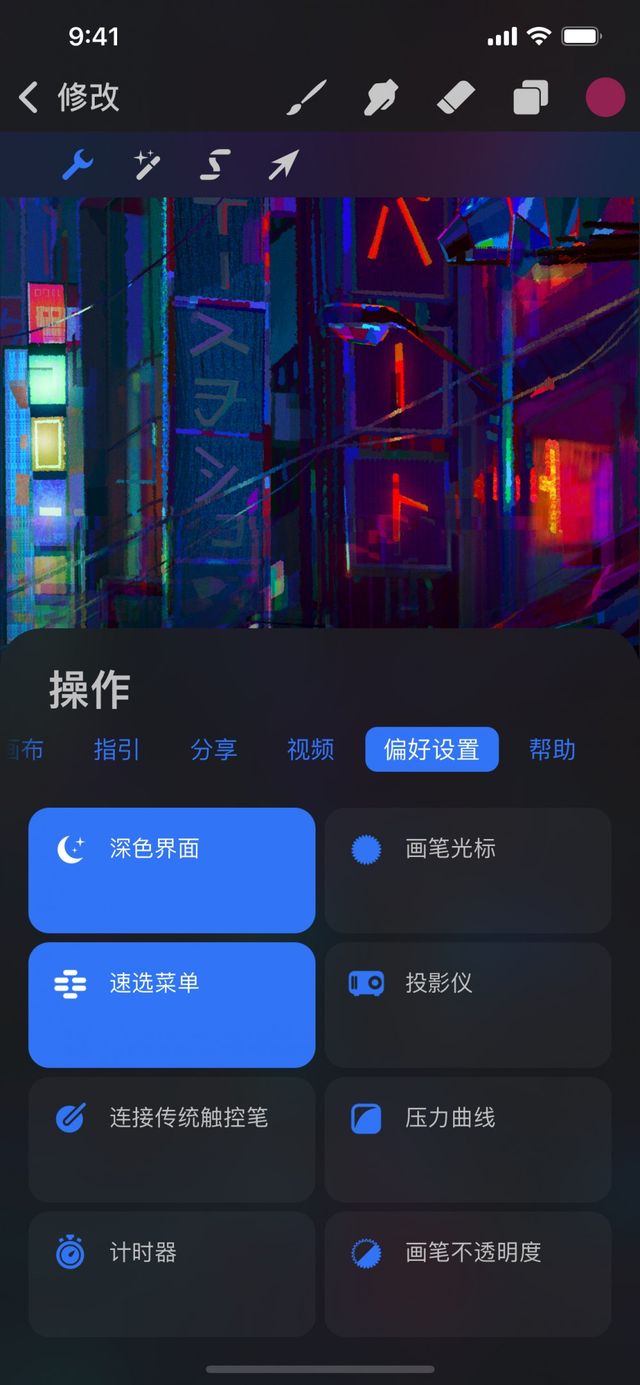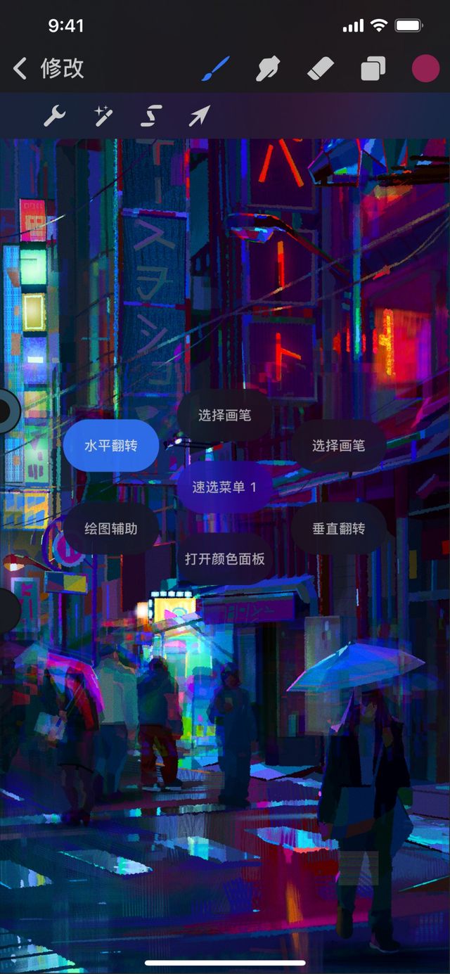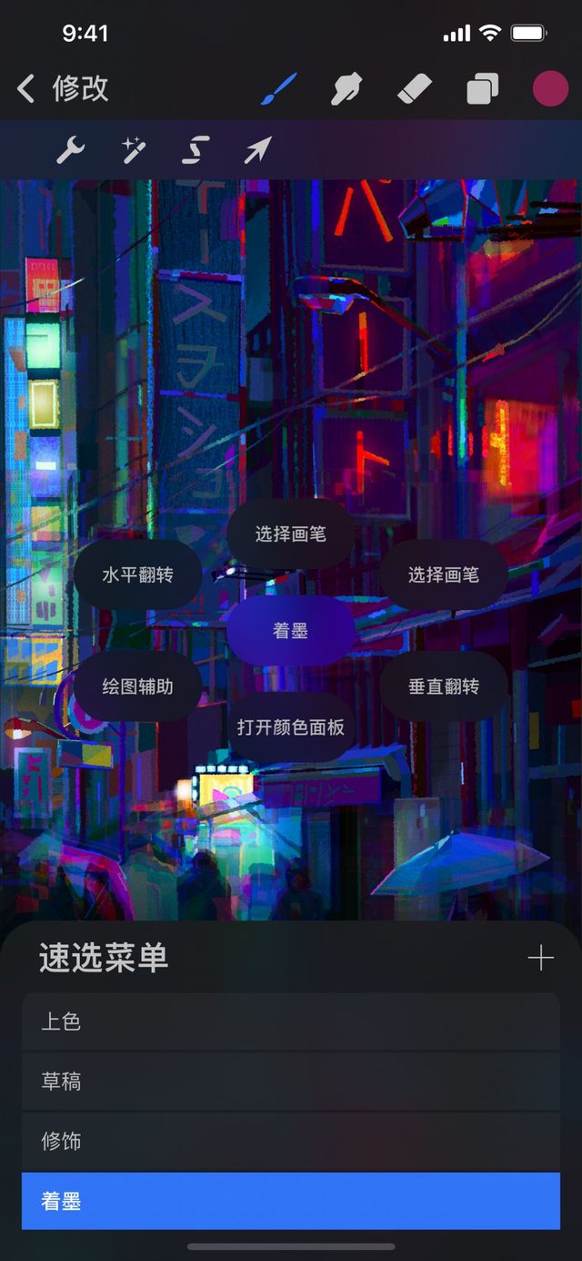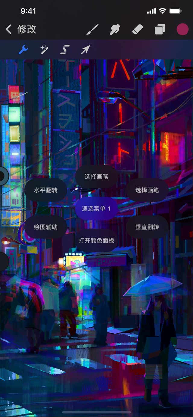 速选菜单通过触控呼唤,以单指双点的手势展开放射状菜单;直到你轻点任一菜单选项或画布其他区域之前,菜单会保持开启。