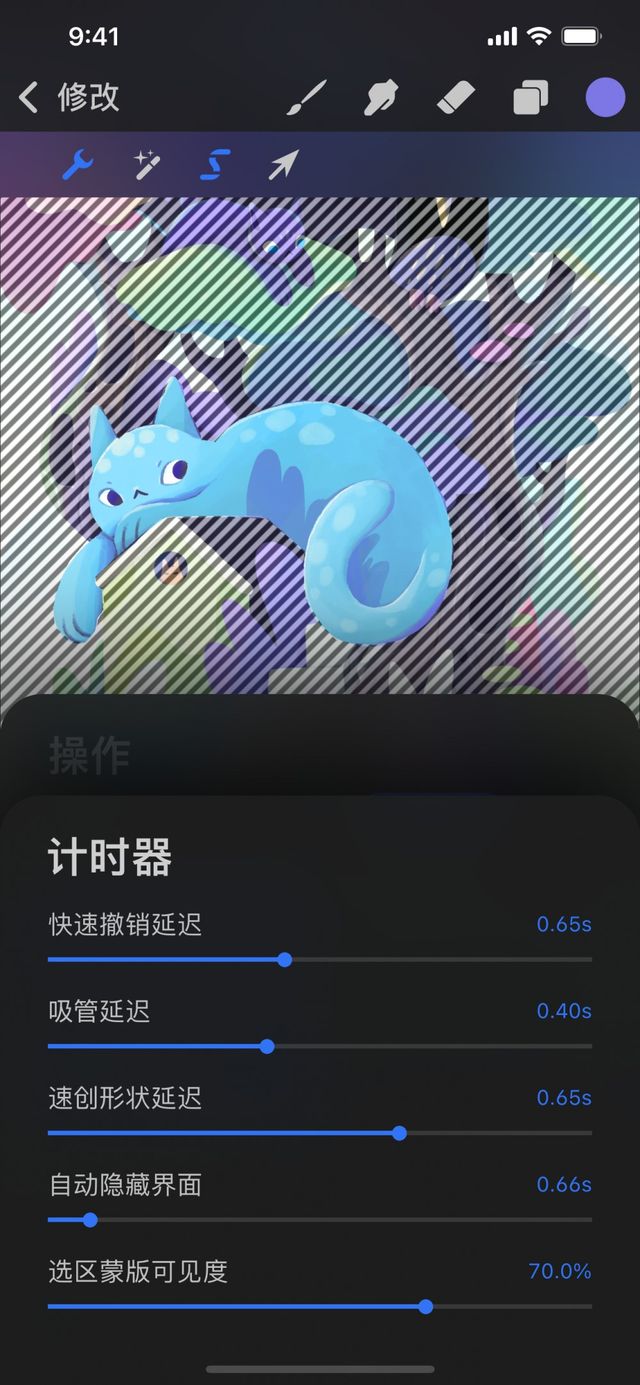 到 修改 > 操作 > 偏好设置 > 计时器 菜单底部,能找到 选区蒙版可见度 滑条。