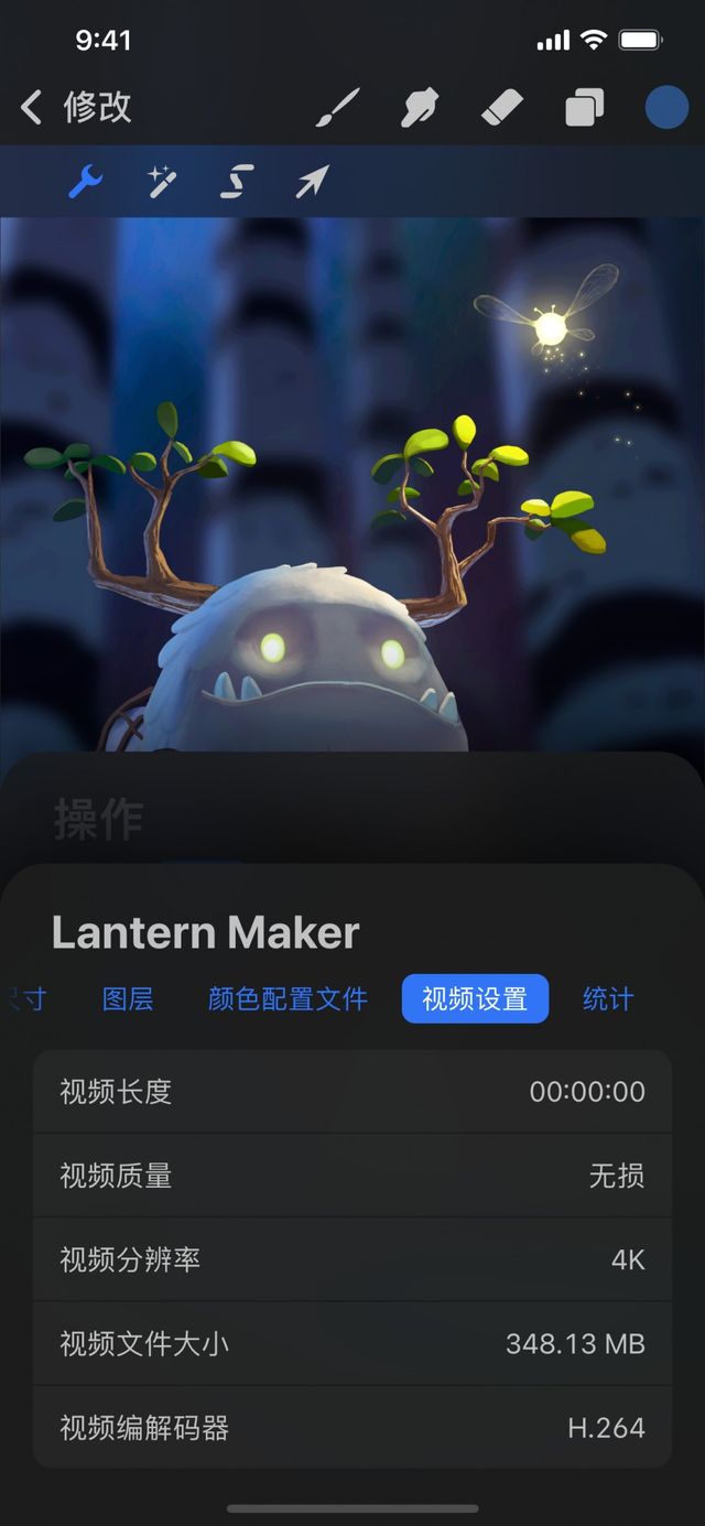 Procreate Pocket 可自动将你的艺术创作过程录制成缩时视频,你能够将其导出分享。