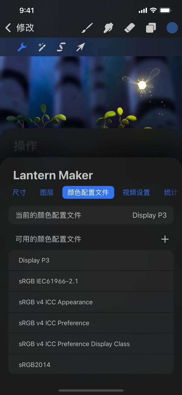 显示你当前文件使用的 颜色配置文件 ,此设置为你在 创建画布 时所选定的。