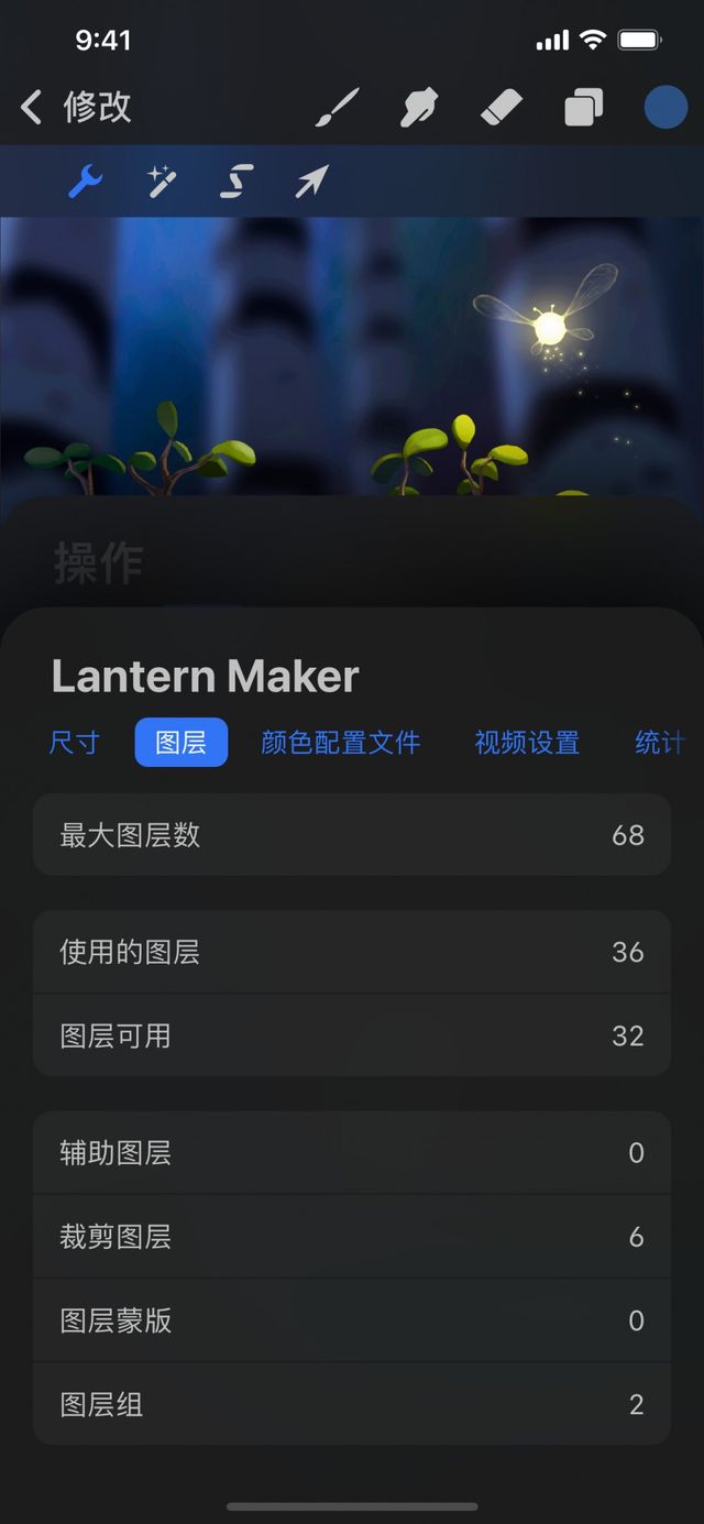 此四个分类表示你在此画布上使用 辅助绘图 的图层、设为 剪辑蒙版 的图层数以及当前作为的 蒙版 和 图层组 的图层数。