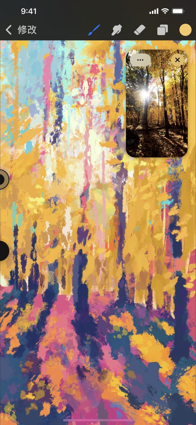 许多创作者会在创作时于画布上使用图像或照片作参考,相同的道理,图像 按钮让你从 照片 应用导入一个图像作为参考。