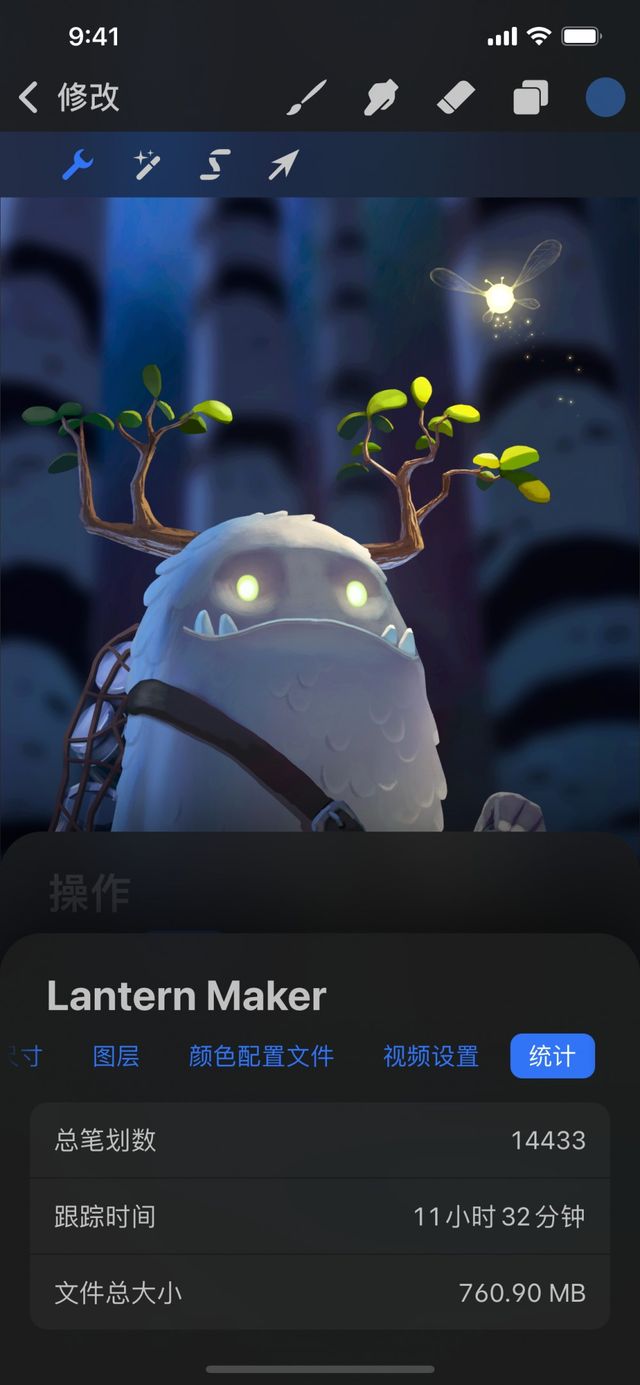 此数值追踪你在 Procreate Pocket 中打开当前作品的时间总长。