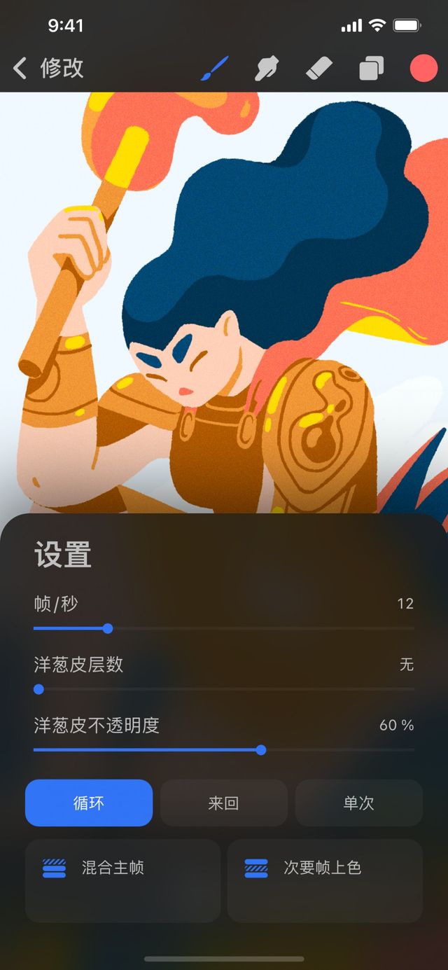Procreate Pocket 的洋葱皮功能也是同理,让你在当前帧周边看到一层朦胧的动画画面预览。