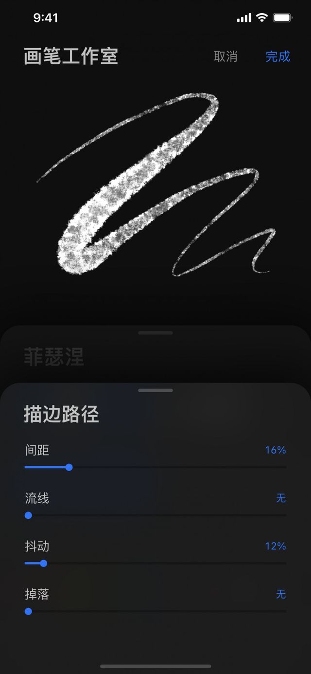Procreate Pocket 的画笔由 形状 创建外形而内含 颗粒(纹理),当你用笔刷绘上笔划时,就如在一条路径上拖动该 形状 和其中的 颗粒。