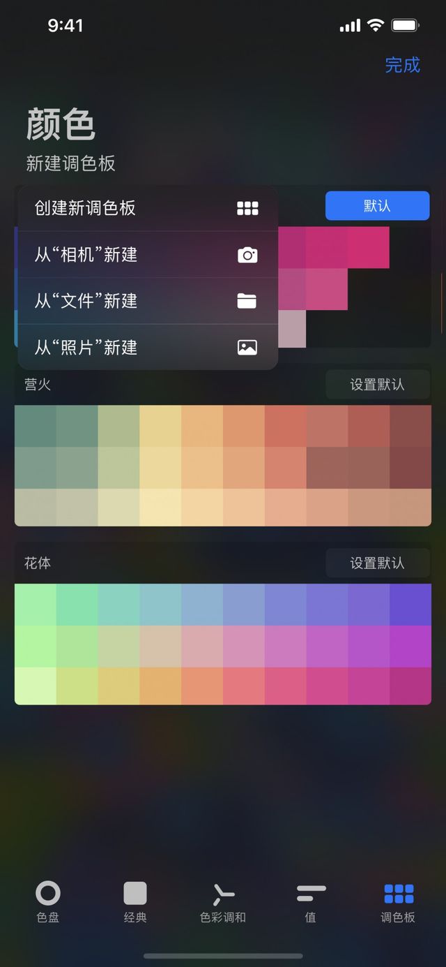 轻点 新建调色板 > 创建新调色板 即可新建空白的调色板。