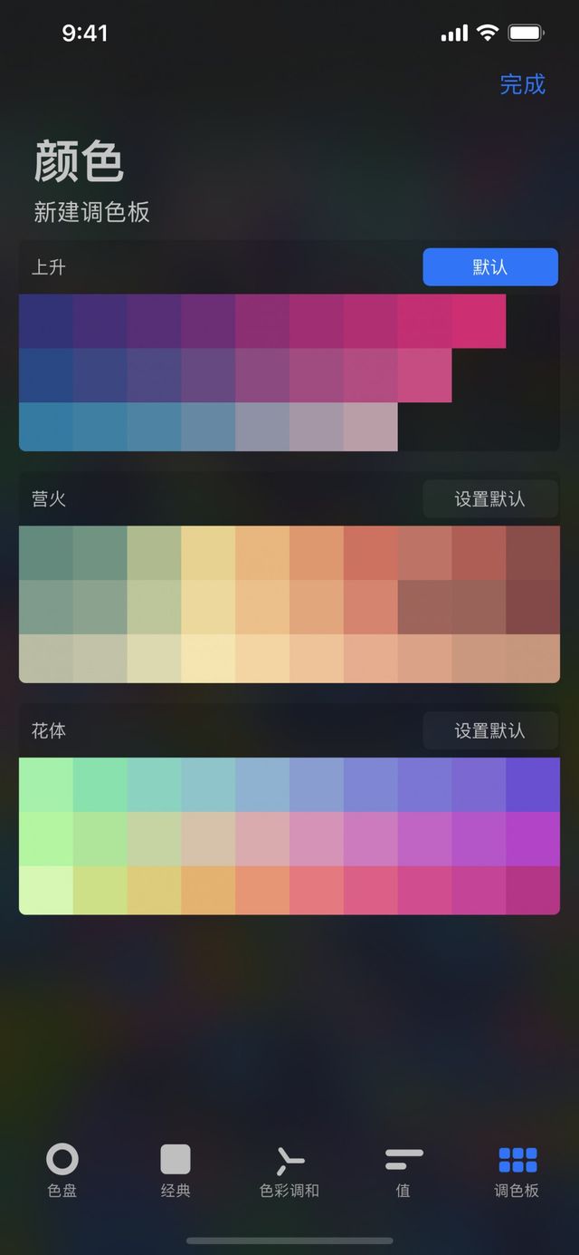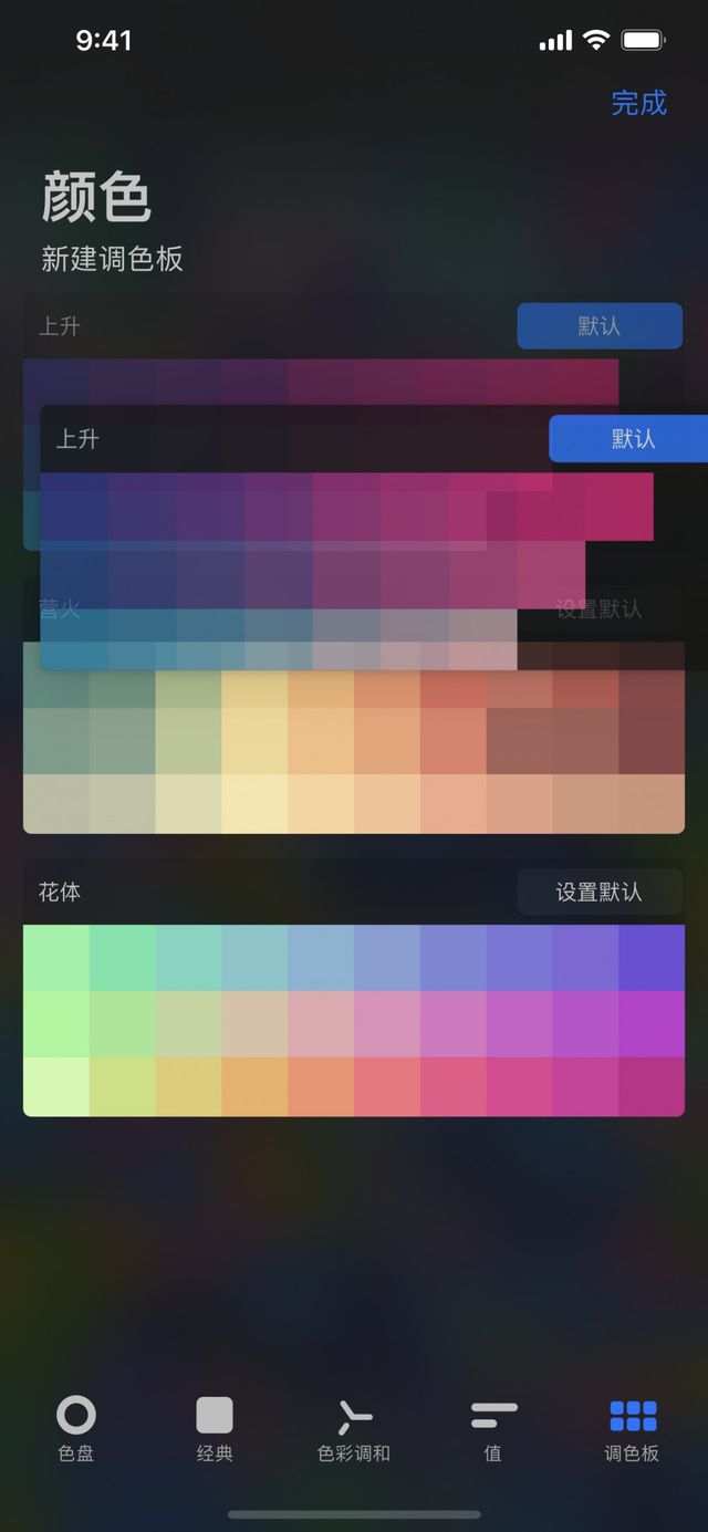 想要设置默认调色板,轻点你选定调色板右边的 设置默认 键即可。