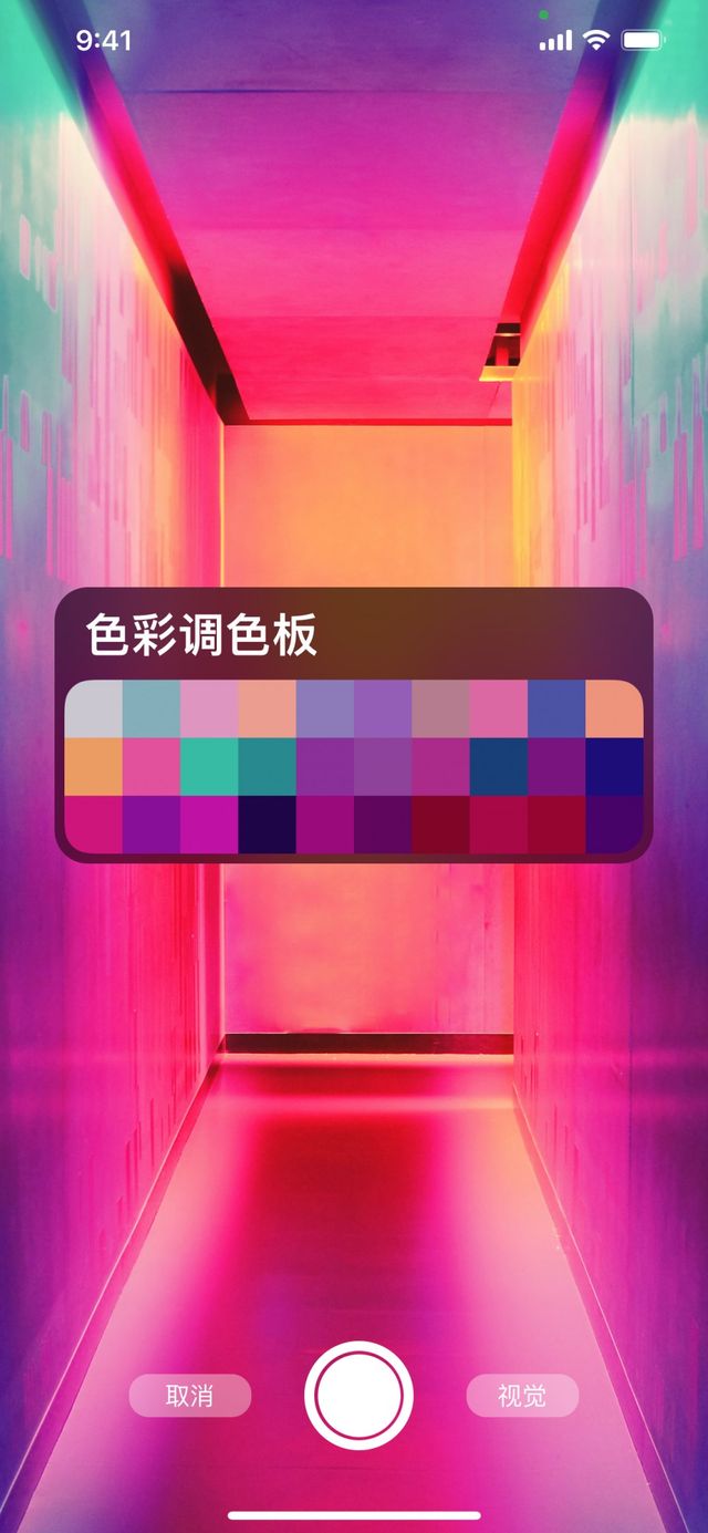 从你 iPhone 摄像头实时呈现的任意画面中截取各种色彩。