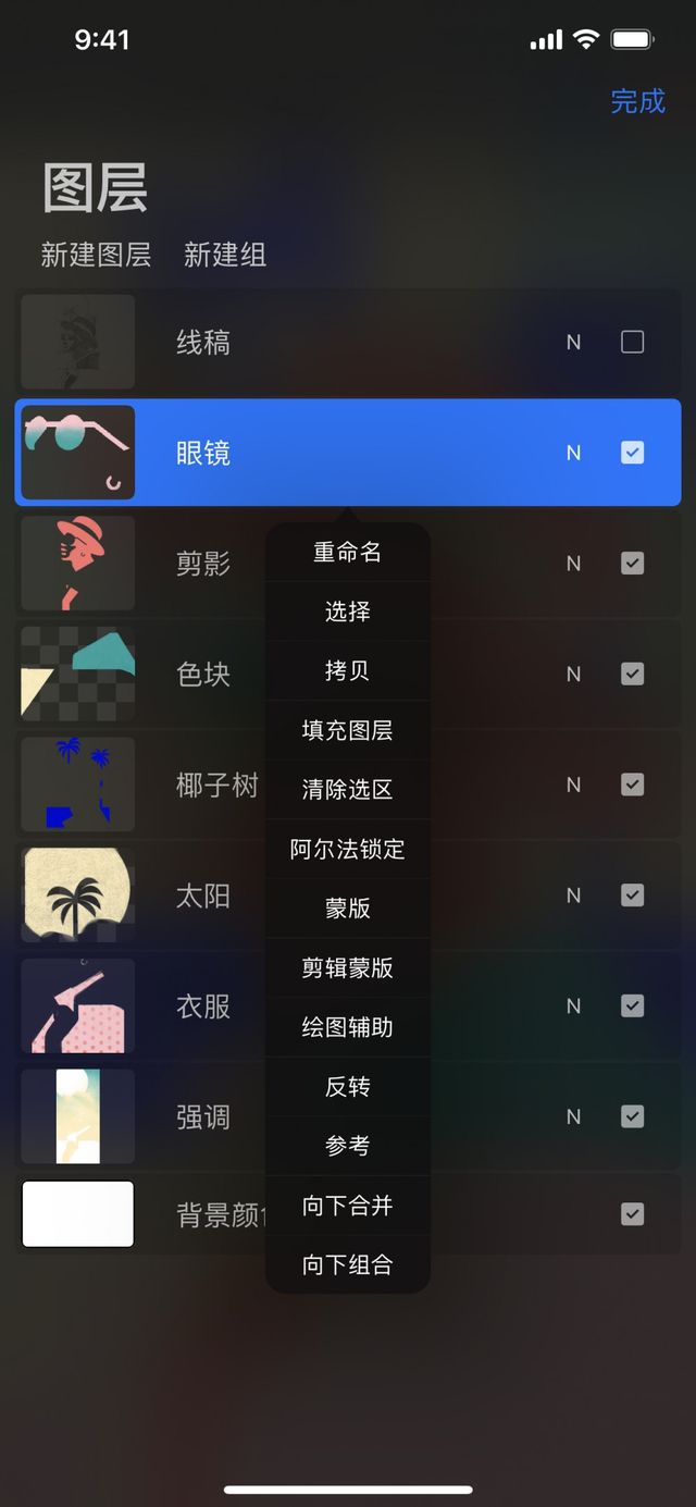 在图层列表界面中,轻点选定一个图层后,再轻点一次即会呼唤出 图层选项 菜单。