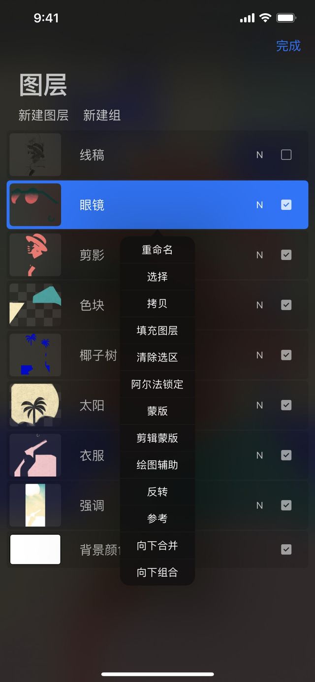 开启图层列表后轻点一个图层,再轻点该图层一次以呼唤 图层选项 菜单。