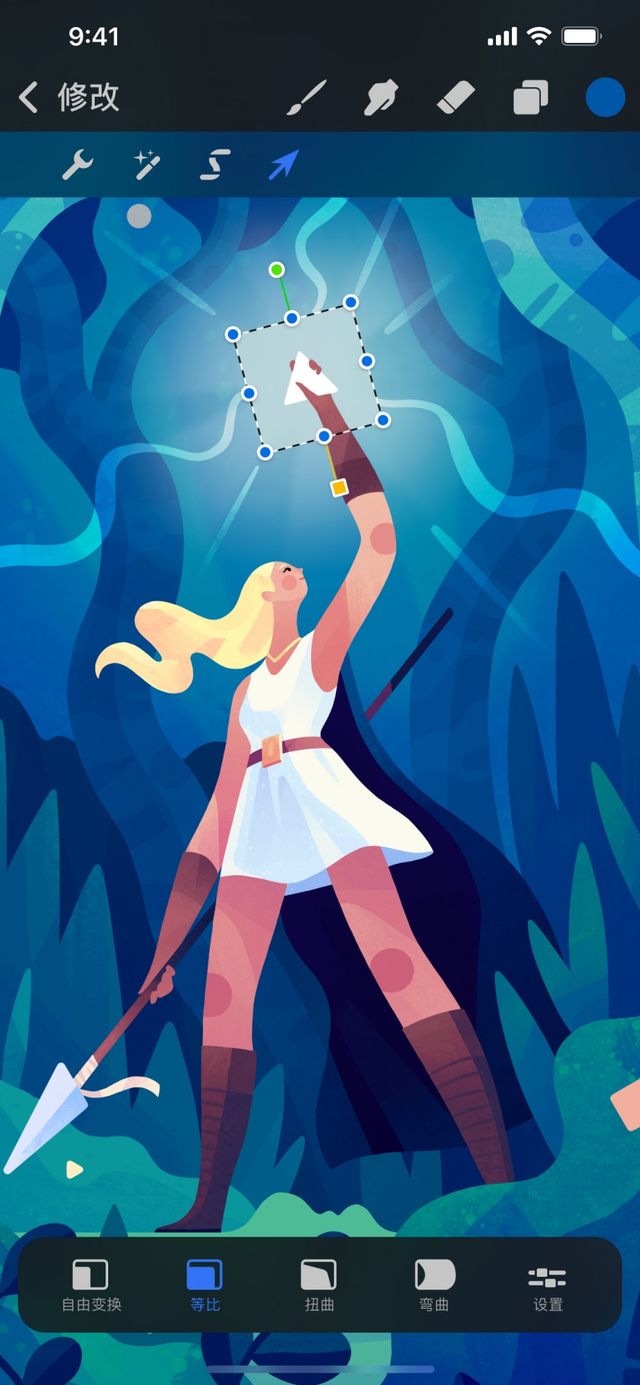 Procreate Pocket 提供两种方法来操作,两者皆保存原物件比例使其不会延展或挤压变形。