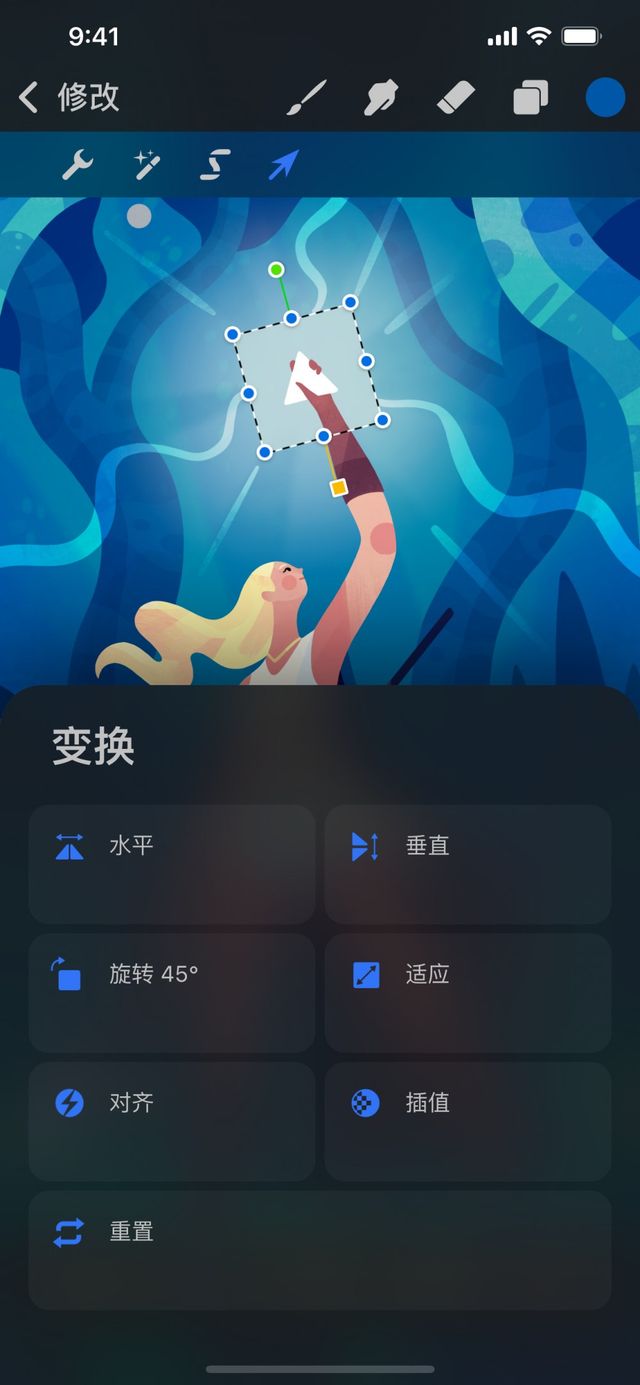 改变 Procreate Pocket 运用变换变形工具时对像素的调整方式,以最好的效果呈现你的图像。
