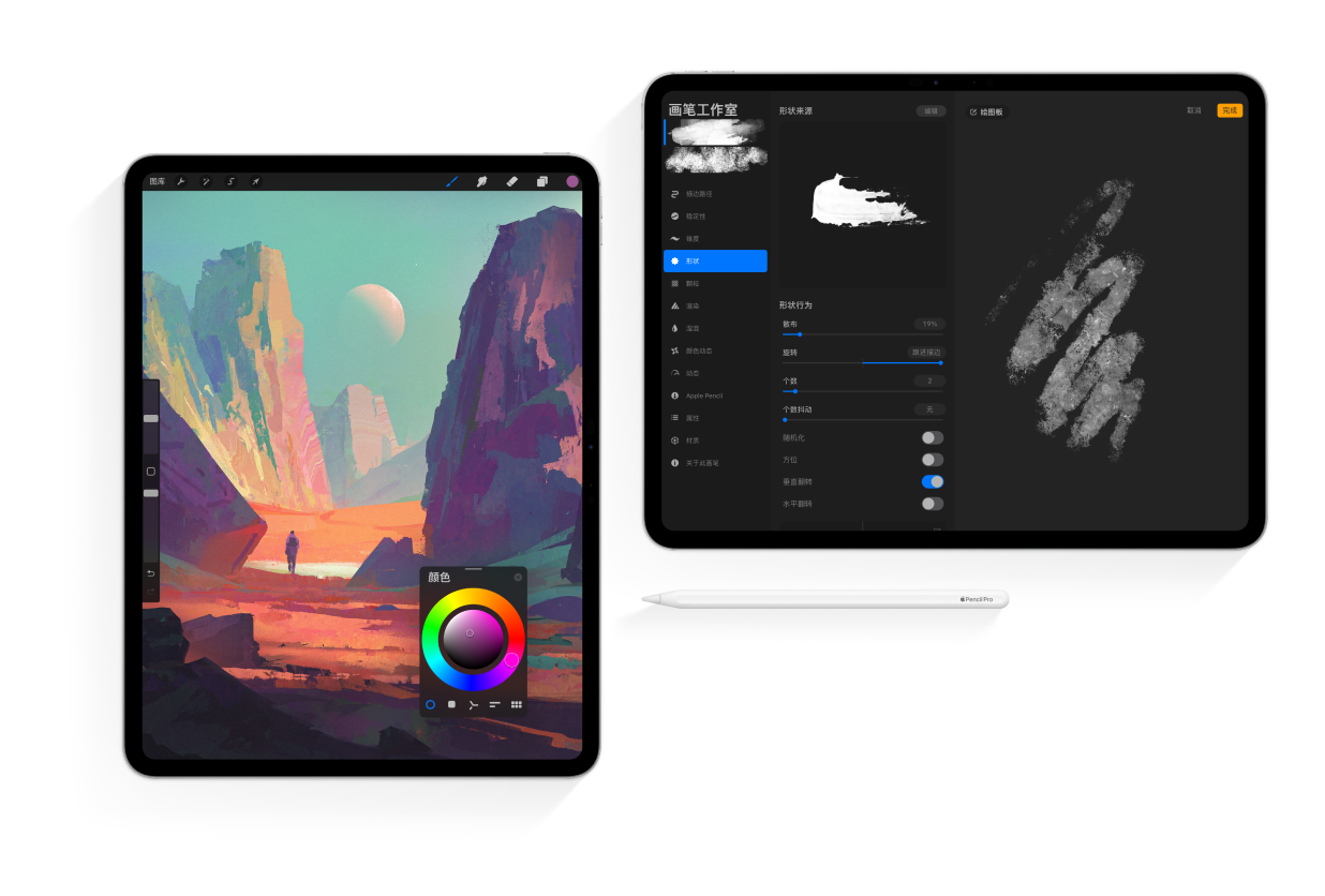 编辑、管理、分享并探索 Procreate 自带的丰富缤纷笔刷世界。