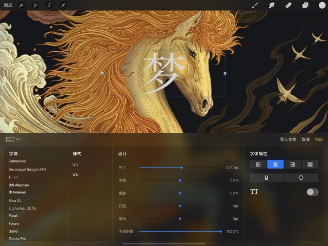 清晰俐落的矢量文本、一系列内建字体、专业级文本编辑功能以及让你导入字体的自由度,Procreate 的文本工具让你发挥无穷的设计灵感。