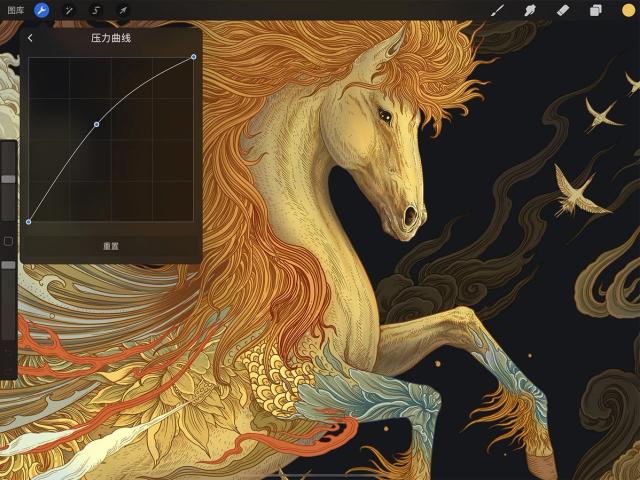 往下阅读更多关于如何调节 Procreate 的整体压力曲线;你也可以在 画笔工作室 中分别编辑各支笔刷的压力曲线。