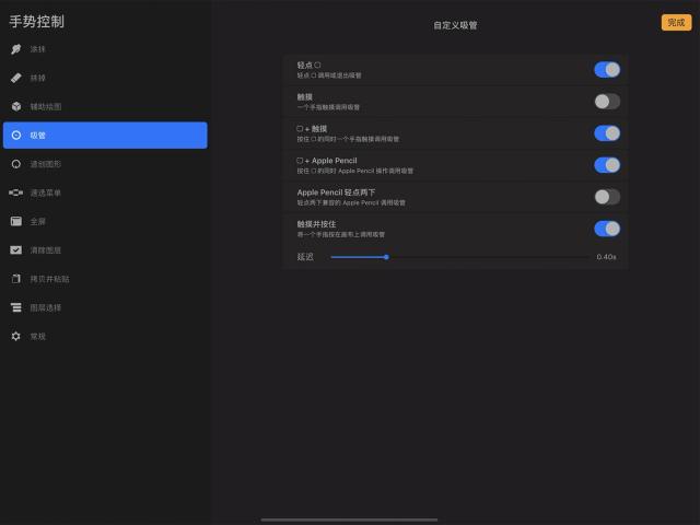 若你经常需要取样颜色、画出完美图形或快速启用多种操作,你可考虑为这些强大功能设置好用又好记的快捷手势。